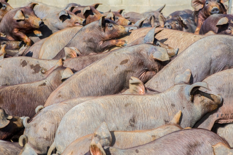 ฝูงหมูจำนวนมากได้แห่เข้ามารุมล้อมตัวเธอ