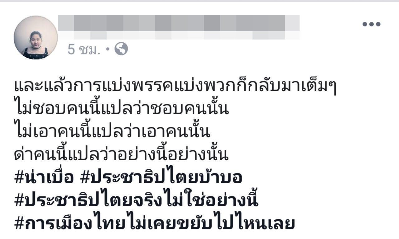 เอิน กัลยกร อดีตนักร้องดัง โพสต์ผิดหวัง หลังพรรคไทยรักษาชาติ เผยแคนดิเดตนายก ทั้งเศร้าและผิดหวัง อยากร้องไห้แต่ร้องไม่ออก ชี้ ประชาธิปไตยจริงไม่ใช่อย่างนี้