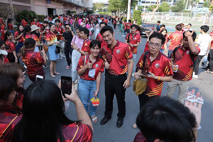ขณะเดียวกัน นายชัชชาติ สิทธิพันธุ์ ผู้สมัครนายกรัฐมนตรีจากพรรคเพื่อไทย ก็มางานฟุตบอลด้วยเช่นกัน ในฐานะศิษย์เก่าของจุฬาฯ ซึ่งก็มีคนมาขอถ่ายรูปด้วยจำนวนมาก