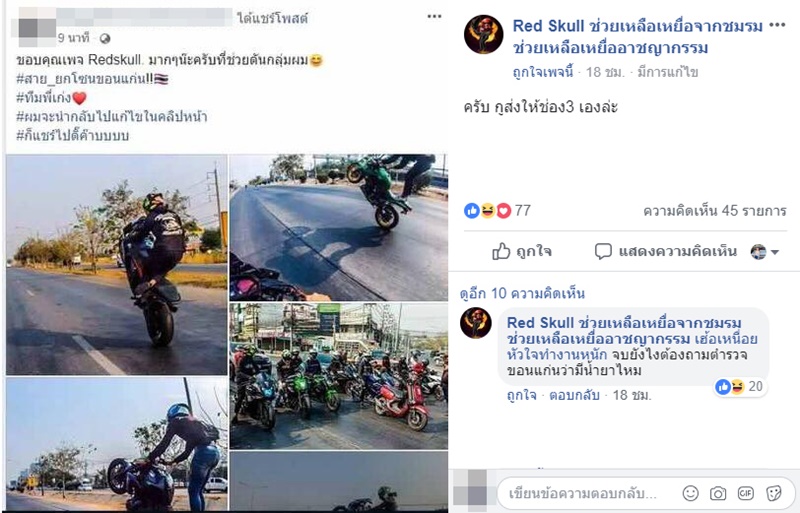 ๆ รวมถึงมีการโพสต์ขอบคุณเพจ Red Skull