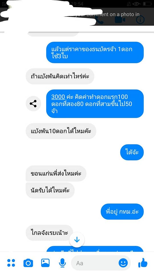 บาท บวกค่าจ้างพับดอกละ 100-50 บาท แต่ด้านลูกค้าสาวอ่านเงื่อนไขไม่แตก