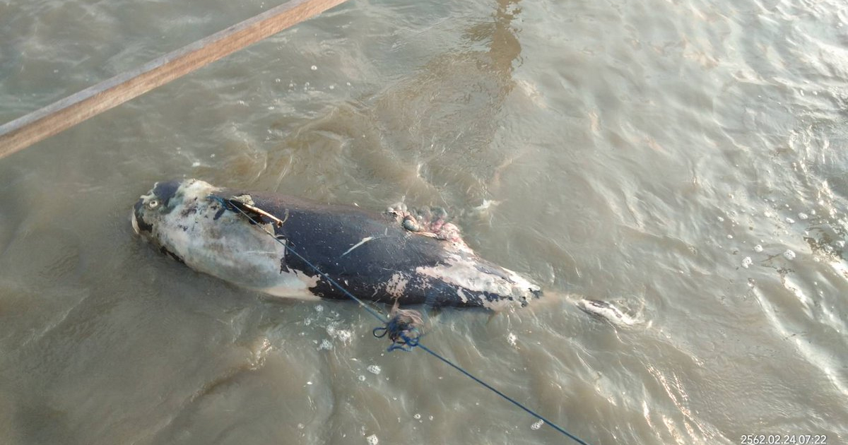 วานนี้ (23 กุมภาพันธ์ 2562) เวิร์คพอยท์นิวส์ มีรายงานกรณีได้รับแจ้งจาก นางสาวพรพรรณ พิมเสน อายุ 42 ปี แม่ค้ามันปิ้งตลาดริมทางรถไฟเมื องประจวบ ว่าพบซากโลมาเกยตื้น บริเวณชายหาดทะเลอ่าวประจวบ อ.เมืองประจวบคีรีขันธ์ จ.ประจวบคีรีขันธ์ โดยตรวจสอบพบว่าเป็นซากลูกโลมา อายุประมาณ 2-3 ปี มีบาดแผลตามลำตัวหัว และหาง ผิวหนังถลอกบวมอืดส่งกลิ่นเหม็ นคละคลุ้ง คาดว่าตายมาแล้วไม่ต่ำกว่า 3-4 วัน เบื้องต้นสันนิษฐานว่าอาจถู กอวนจับปลาของเรือประมงในทะเล จนได้รับบาดเจ็บตายแล้วขึ้นอืด ถูกคลื่นซัดมาเกยตื้น