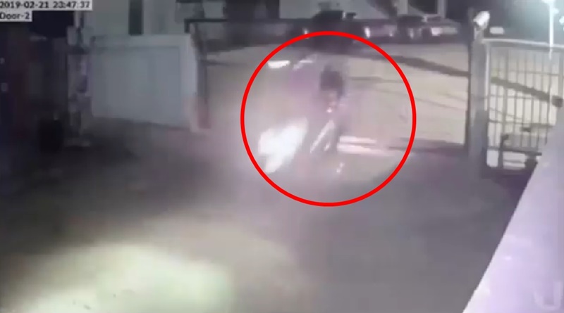 เปิดคลิปวงจรปิด ชายแต่งกายคล้ายตำรวจขี่มอเตอร์ไซค์พุ่งชนรั้ว ม.ราชภัฏเลย กลางดึก ก่อนหายไปในความมืด