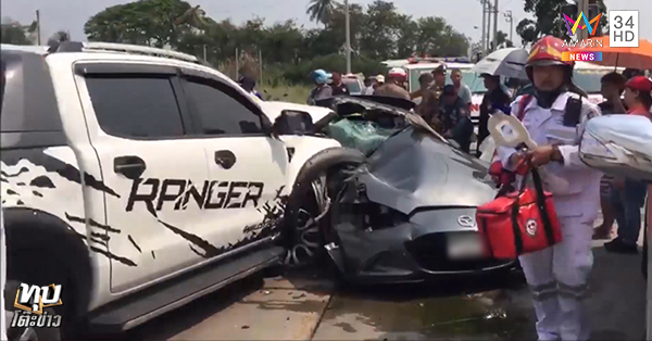 ![รถสปอร์ตหลุดโค้งชนกระบะ รถสปอร์ตหลุดโค้งชนกระบะ]()