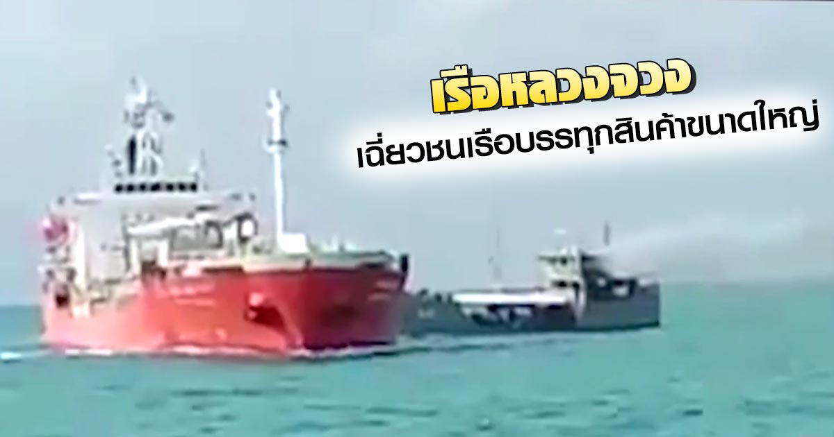 เปิดภาพ เรือหลวงจวง เฉี่ยวชนเรือบรรทุกสินค้าขนาดใหญ่ กลางทะเลมาบตาพุด หลังระบบบังคับภายในเรือขัดข้อง ไม่สามารถควบคุมความเร็วได้