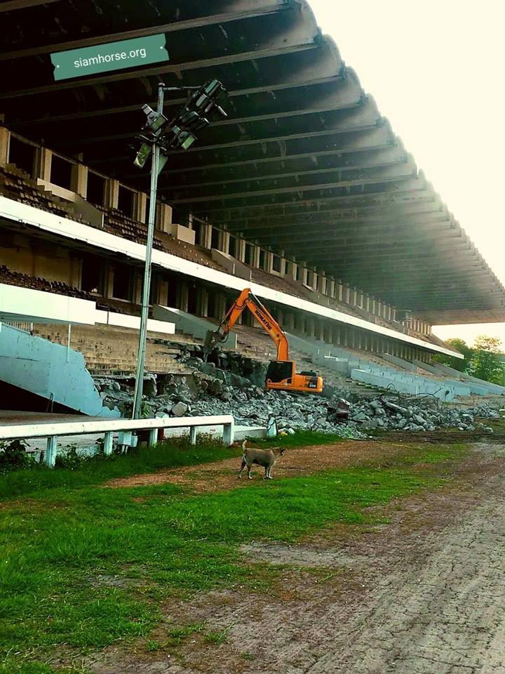 วันที่ 3 มีนาคม 2562 เฟซบุ๊ก Workpoint News - ข่าวเวิร์คพอยท์ เผยรายงานว่า เจ้าหน้าที่ได้เริ่มเข้าทำการรื้อถอนบริเวณสนามม้านางเลิ้ง โดยเริ่มใช้รถแบ็กโฮ เข้ารื้อส่วนพื้นที่อัฒจันทร์ข้างสนามแข่งแล้ว ภายหลังจากเมื่อปีที่ผ่านมา ทางสำนักงานทรัพย์สินส่วนพระมหากษัตริย์ ได้บอกเลิกสัญญาเช่า พร้อมให้ส่งมอบพื้นที่คืนภายใน 180 วัน