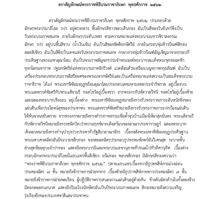 สมเด็จพระเจ้าอยู่หัว พระราชทานแบบตราสัญลักษณ์พระราชพิธีบรมราชาภิเษก พ.ศ. 2562 โปรดเกล้าฯ ประดับตั้งแต่เดือนเมษายน 2562 - 4 พฤษภาคม 2563