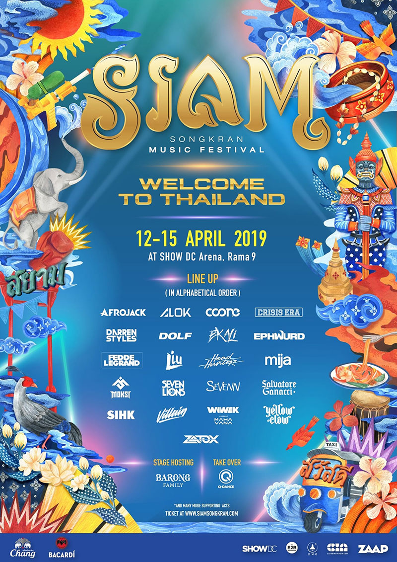 THE WORLD-CLASS SONGKRAN EXPERIENCE WITH A MASSIVE LINE-UP! ครั้งเเรกในประเทศไทย ที่ Music Festival เทศกาลดนตรีระดับโลก จะผสมผสานความเป็นไทย ผ่านเทศกาลสงกรานต์ได้อย่างลงตัว ภายใต้คอนเซ็ป 'WELCOME TO THAILAND' ซัมเมอร์นี้เตรียมตัวให้พร้อม แล้วเดินมาสาดพลังอันร้อนระอุผ่านสายน้ำเย็นและดีเจชั้นนำของโลก กับงาน 'SIAM Songkran Music Festival (สยาม สงกรานต์ มิวสิค เฟสติวัล)' ให้คุณได้ปลดปล่อยความเดือดกันถึง 4 วัน 4 คืน ตลอดเทศกาลสงกรานต์นี้ ตั้งแต่ 12-15 เมษายน 62 ที่ SHOW DC Arena บนนถนนพระราม 9