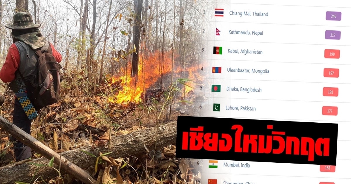 วันที่ 13 มีนาคม 2562 ที่เว็บไซต์ AirVisual ได้จัดอันดับดัชนีคุณภาพอากาศ ตามเมืองท่องเที่ยวทั่วโลกประจำวันที่ 13 มีนาคม (เวลา 10.31 น.) ที่ผ่านมา พบว่า จังหวัดเชียงใหม่ยังอยู่อันดับ 1 เมืองที่มีมลพิษมากที่สุด ติดต่อกันเป็นวันที่ 3 โดยค่า AQI หรือ Air Quality Index โดยรวมอยู่ที่ 246 รองลงมาคือ เมืองกาฐมาณฑุ ประเทศเนปาล 217 และอันดับ 3 เมืองคาบูล ประเทศอัฟกานิสถาน 198