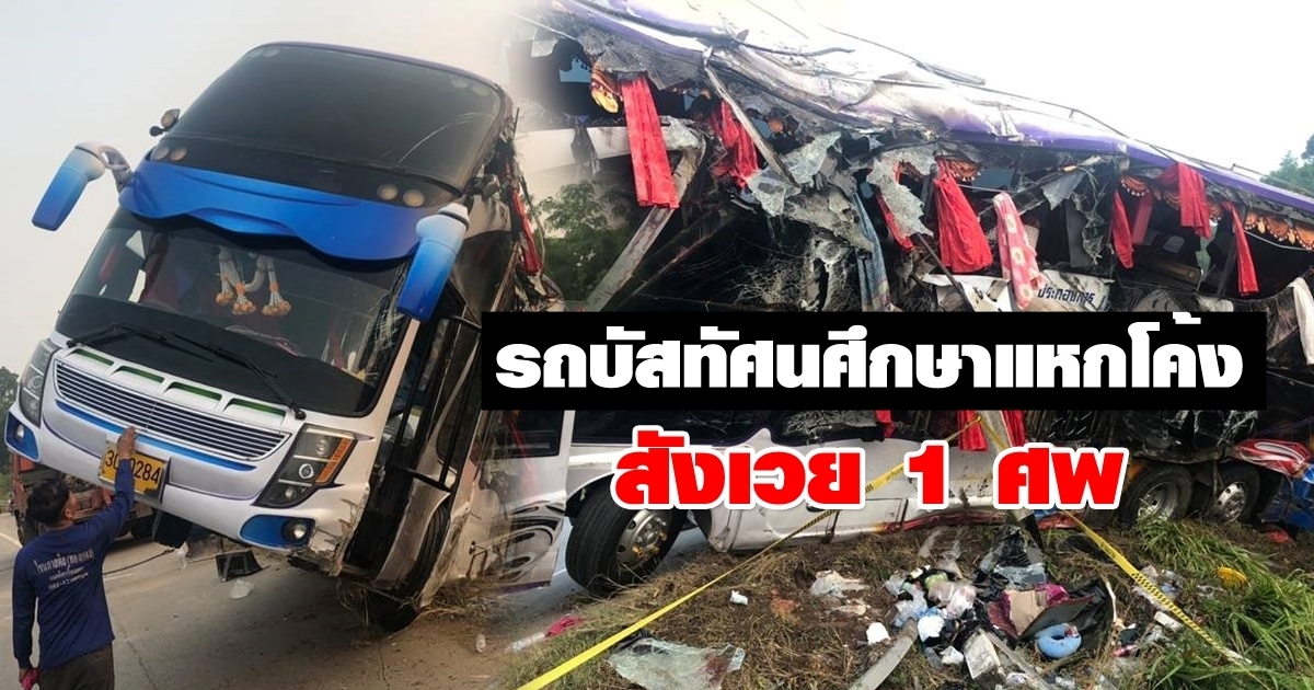 รถบัสทัศนศึกษาครู-นักเรียน โรงเรียนบ้านโคกน้ำเกลี้ยง จ.หนองบัวลำภู 39 ชีวิต เสียหลักหลุดโค้งพลิกคว่ำหน้าวัดทับลานอุทยานสวรรค์ จ.ปราจีนบุรี นักเรียนหญิงเสียชีวิต 1 ราย บาดเจ็บจำนวนมาก