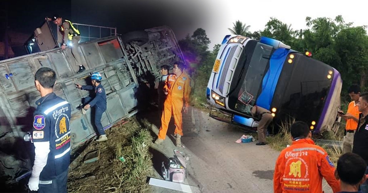 ![รถบัสทัศนศึกษาหลุดโค้ง รถบัสทัศนศึกษาหลุดโค้ง]()