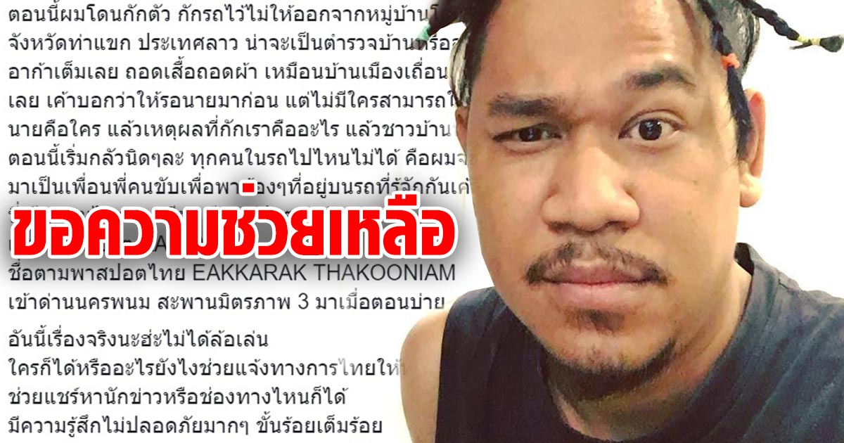 วันที่ 18 มีนาคม 2562 เฟซบุ๊ก Eakkarak Poddy Thakooniam ได้มีการโพสต์ข้อความขอความช่วยเหลือ โดยระบุว่า "ตอนนี้ผมโดนกักตัว กักรถไว้ไม่ให้ออกจากหมู่บ้านโคกป่าทอน แขวงคำม่วน จังหวัดท่าแขก ประเทศลาว น่าจะเป็นตำรวจบ้านหรืออะไรสักอย่างห้อยปืนอาก้าเต็มเลย ถอดเสื้อถอดผ้า เหมือนบ้านเมืองเถื่อน ชุมชนกลุ่มน้อยในหนังเลย เค้าบอกว่าให้รอนายมาก่อน แต่ไม่มีใครสามารถให้คำตอบที่ชัดเจนได้ว่านายคือใคร แล้วเหตุผลที่กักเราคืออะไร แล้วชาวบ้านที่นี่ก็งง ๆ ว่านายไหน