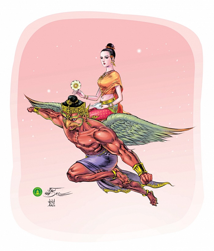 นางสงกรานต์ ประจำปี 2562 ทรงนามว่า ทุงสะเทวี ทรงพาหุรัดทัดดอกทับทิม เสด็จนั่งมาเหนือหลังครุฑ บันดาลฝนตก 500 ห่า เกิดวิบัติข้าวกล้าในภูมินา จะได้ผลกึ่งหนึ่ง ด้านน้ำงามพอดี