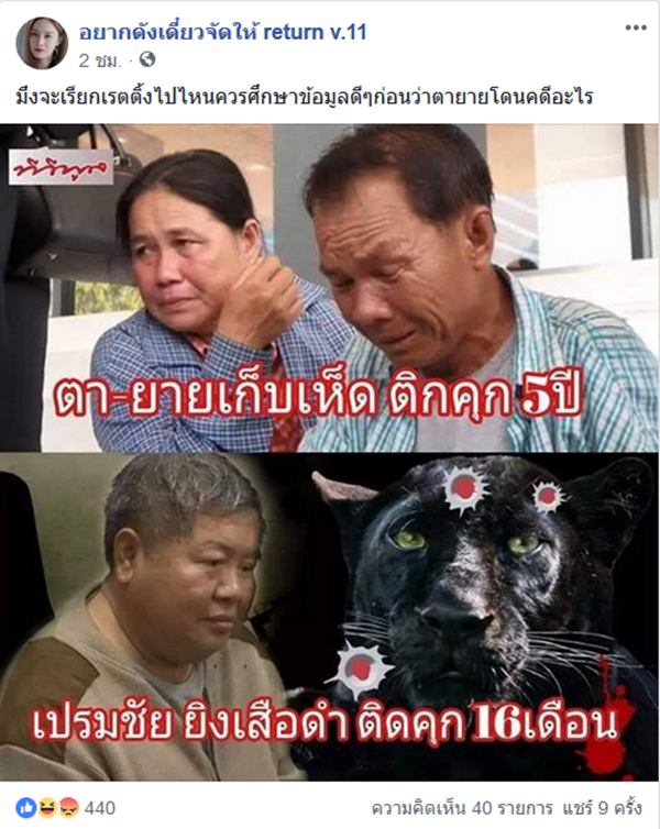 เพจดังพร้อมใจโพสต์ หยุดเปรียบเทียบคดี เปรมชัย-ตายายเก็บเห็ด หลังเกิดกระแสเปรียบเทียบหนัก ชี้อายุ 48 ไม่ใช่ตายาย และไม่ได้เก็บเห็ด แต่ลอบตัดไม้ป่าสงวน