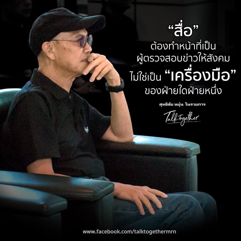 สุทธิชัย หยุ่น อดีตผู้บริหารเนชั่น ชี้หน้าที่ สื่อ ต้องตรวจสอบข่าวให้สังคม ไม่ใช่เป็นเครื่องมือฝ่ายใด ปมดราม่าร้อนอดีตสังคม เปิดคลิปเสียงตัดต่อออกอากาศ