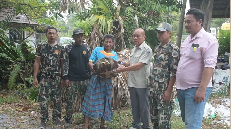 ทราบว่า เป็นเต่ากระอาน ซึ่งเป็นสัตว์หายากใกล้สูญพันธุ์ น้ำหนักประมาณ 22