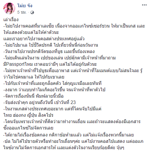 รายละเอียดเพิ่มเติมจาก เฟซบุ๊ก โม่ย จัง