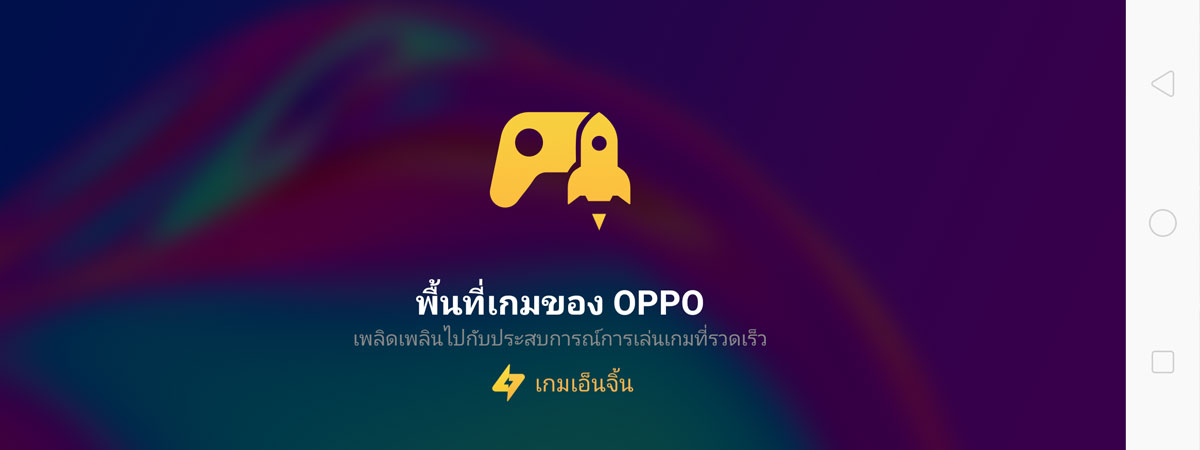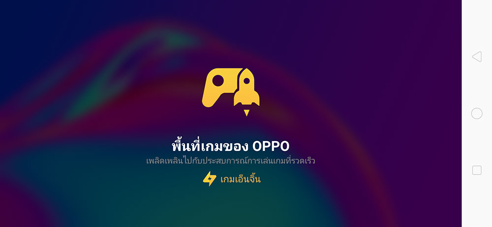 เปิดเกมมาจะเห็นคำว่า “พื้นที่เกมของ OPPO” ก่อน โดยจะเรียกกันว่า Game Space เป็นอีกหนึ่งฟังก์ชั่นที่ออกแบบโดย OPPO เพื่อเพิ่มประสิทธิภาพให้การเล่นเกมของผู้ใช้นั้น สนุกยิ่งขึ้น เล่นได้ลื่นไม่มีหน่วง ช่วยเพิ่มอรรถรสและประสบการณ์ความสนุกให้ผู้ใช้งานได้อย่างเต็มที่