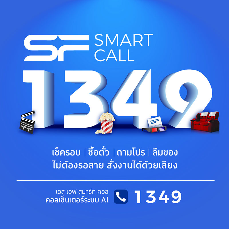 โรงภาพยนตร์ในเครือ เอส เอฟ เปลี่ยนหมายเลขโทรศัพท์ SF Call Center จากเดิม 02-268-8888 เป็น "SF Smart Call 1349" คอลเซ็นเตอร์สุดล้ำด้วยระบบ AI แห่งแรกของโรงภาพยนตร์ในเมืองไทย เพื่อตอบสนองไลฟ์สไตล์ของลูกค้ายุคใหม่ที่ชื่นชอบความรวดเร็วและสะดวกสบาย สั่งงานได้ด้วยเสียง ทั้งการตรวจสอบรอบฉาย ซื้อบัตรชมภาพยนตร์ สอบถามโปรโมชั่น แจ้งลืมสิ่งของ รวมถึงการส่งข้อมูลที่ลูกค้าต้องการผ่านทาง SMS ไปยังโทรศัพท์มือถือของลูกค้าทันทีที่ทำรายการจบ ทั้งนี้ ลูกค้าของ เอส เอฟ สามารถใช้บริการ "SF Smart Call 1349" คอลเซ็นเตอร์ระบบ AI ได้ตั้งแต่วันที่ 1 เมษายนนี้เป็นต้นไป ดูรายละเอียดเพิ่มเติมที่ www.sfcinemacity.com และ www.facebook.com/WeLoveSF