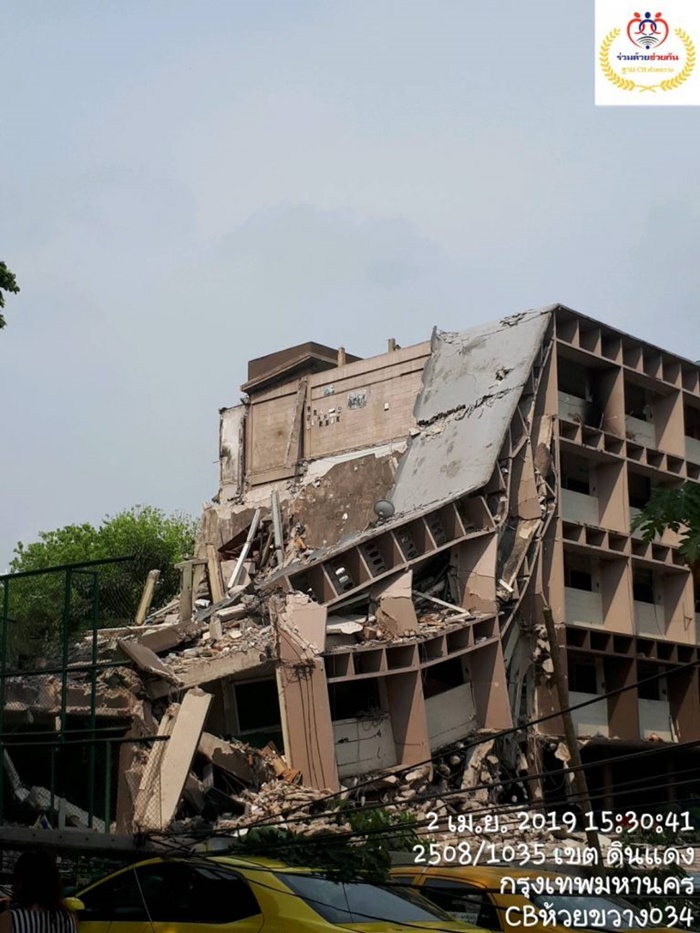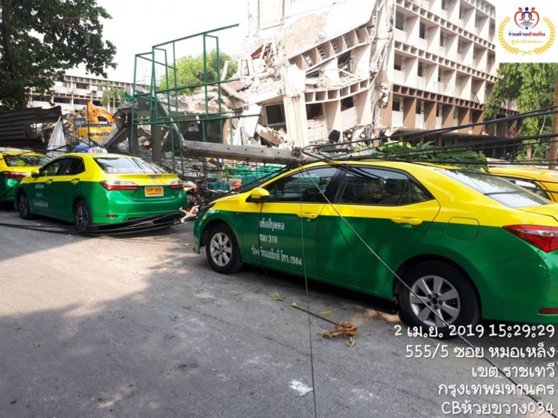 เกิดเหตุอาคารแฟลตดินแดงที่กำลังอยู่ระหว่างการรื้อถอน ถล่มทับรถพังเสียหาย 7 คัน มีคนบาดเจ็บ 1 ราย เจ้าหน้าที่รุดตรวจสอบแล้ว