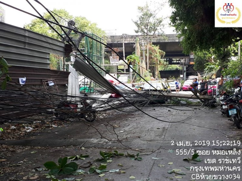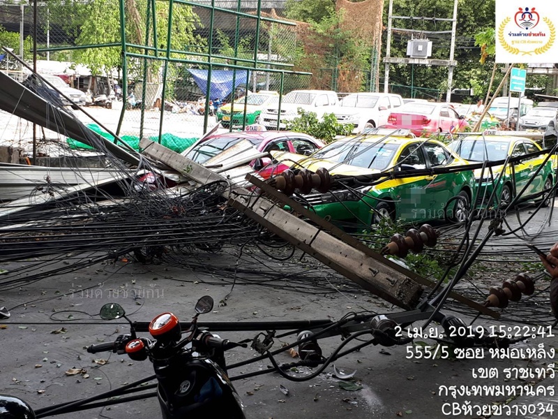 ล้มทับสายไฟฟ้า รถแท็กซี่ จำนวน 5 คัน และรถยนต์ส่วนบุคคล จำนวน 2
