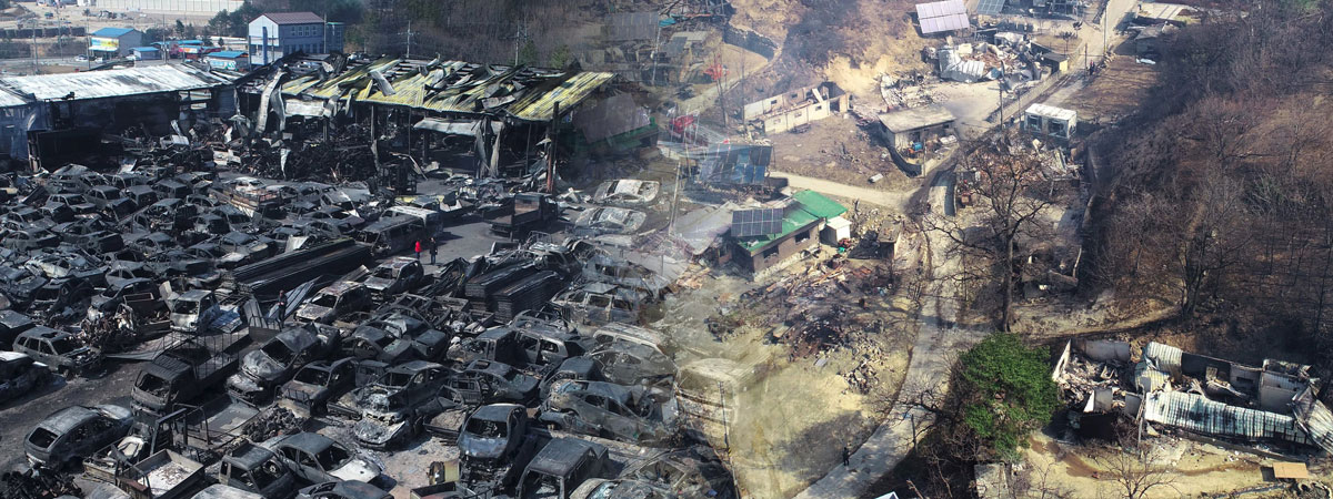 วันที่ 5 เมษายน 2562 สำนักข่าวบีบีซี รายงานความคืบหน้ากรณีเหตุไฟไหม้ป่าครั้งใหญ่ที่สุดในประวัติศาสตร์ของเกาหลีใต้ โดยเหตุเกิดขึ้นเมื่อเวลาประมาณ 19.00 น. (ตามเวลาท้องถิ่น) ของวันที่ 4 เมษายน ที่ผ่านมา ต้นเพลิงเกิดขึ้นที่เมืองโกซอง ในจังหวัดกังวอน ก่อนจะลุกลามไปทั่วบริเวณอย่างรวดเร็ว และลามไปยังพื้นที่ใกล้เคียง ที่เมืองซกโซ และคังนึง