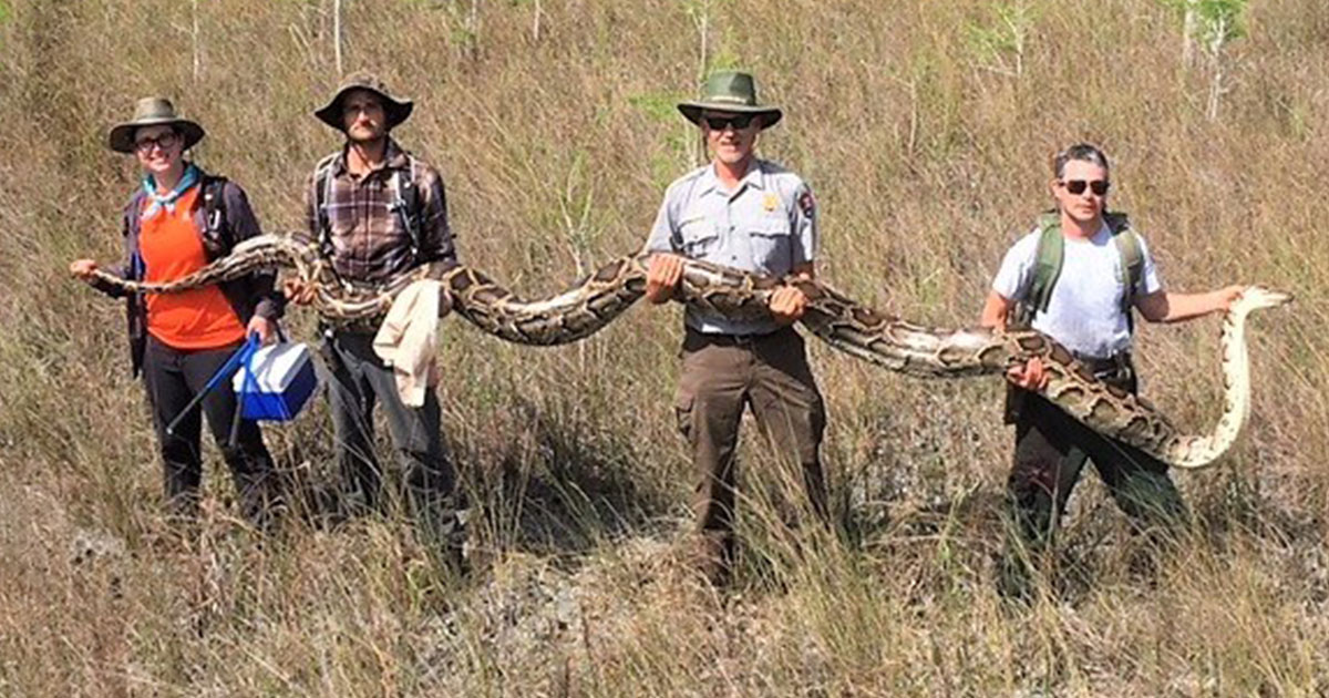 พบงูหลามพม่ายาว 5.18 เมตร พร้อมไข่เต็มท้อง 73 ใบ ในอุทยานรัฐฟลอริดา สหรัฐอเมริกา นักวิทยาศาสตร์ไร้ทางเลือก ต้องกำจัดทิ้ง เนื่องจากเป็นสายพันธุ์รุกราน เผยมีชุกชุมมาก อันตรายต่อระบบนิเวศ