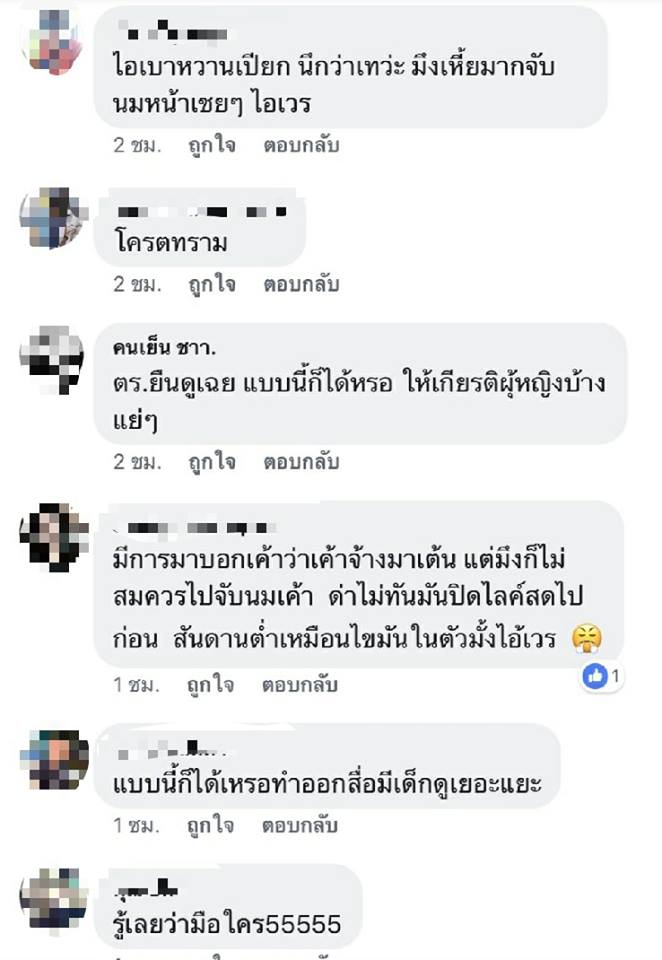 ซึ่งหลังจากนั้นก็ได้มีการเอื้อมมือไปจับหน้าอกของพริตตี้ทั้งสอง