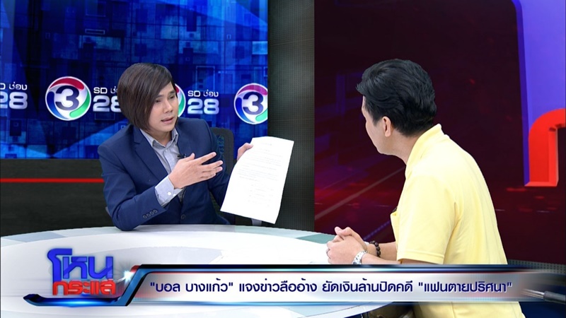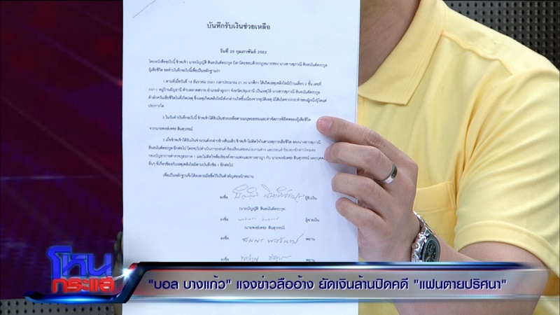 บอล : ที่ผมคุยกับป๊า ในอนาคตถ้าป๊าเดือดร้อน ป๊าโทร. หาผมได้นะผมช่วยเหลือได้ แต่ถ้าผมตกลงกับป๊า 3 ล้านตามที่เป็นข่าวจริง ผมก็ระบุเลยว่ายอดทั้งหมด 3 ล้าน มอบให้ก่อน 1 ล้าน อีก 2 ล้านจะชำระเมื่อไหร่ ซึ่งไม่มีนะครับ ทุกข้อความนี้ ป๊าออกแบบเองทั้งหมด ผมไม่ได้มีส่วนอะไรเลย ผมลงชื่อเป็นพยาน เซ็นตามที่ขอทุกอย่าง