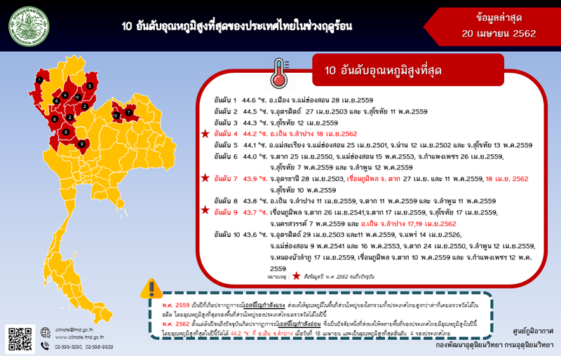 วันที่ 20 เมษายน 2562 กรมอุตุนิยมวิทยา ได้เผยรายงาน 10
