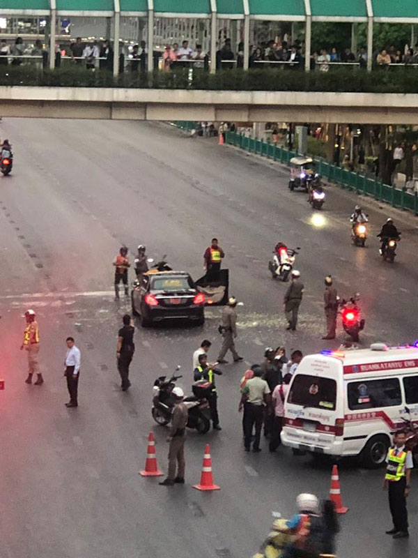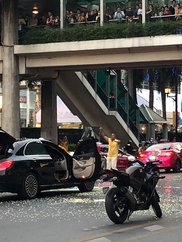 เมื่อวันที่ 24 เมษายน 2562 เฟซบุ๊ก JS100 Radio รายงานว่า ที่ถนนหน้าศูนย์การค้าเซ็นทรัลเวิลด์ เกิดเหตุชายหนุ่มจอดรถป้ายแดง พร้อมกับลงมาบนถนนใช้มีดทำร้ายตัวเอง และเทงูลงบนถนนหลายตัว สร้างความแตกตื่นแก่คนรอบข้างจนต้องมุงดู