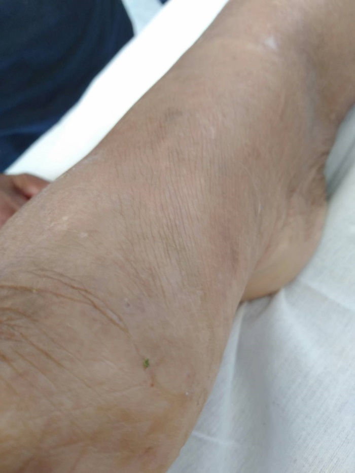 โดยแผลยังมีอาการบวมและสีเขียวช้ำ