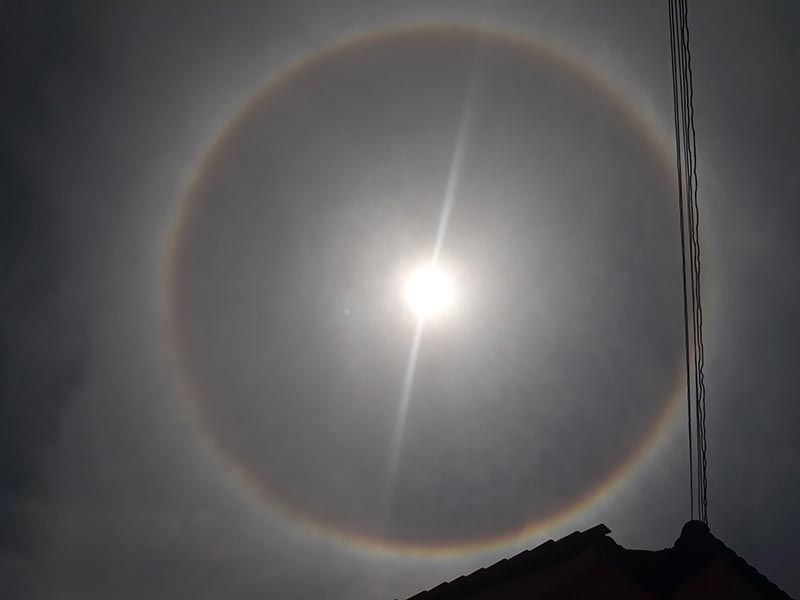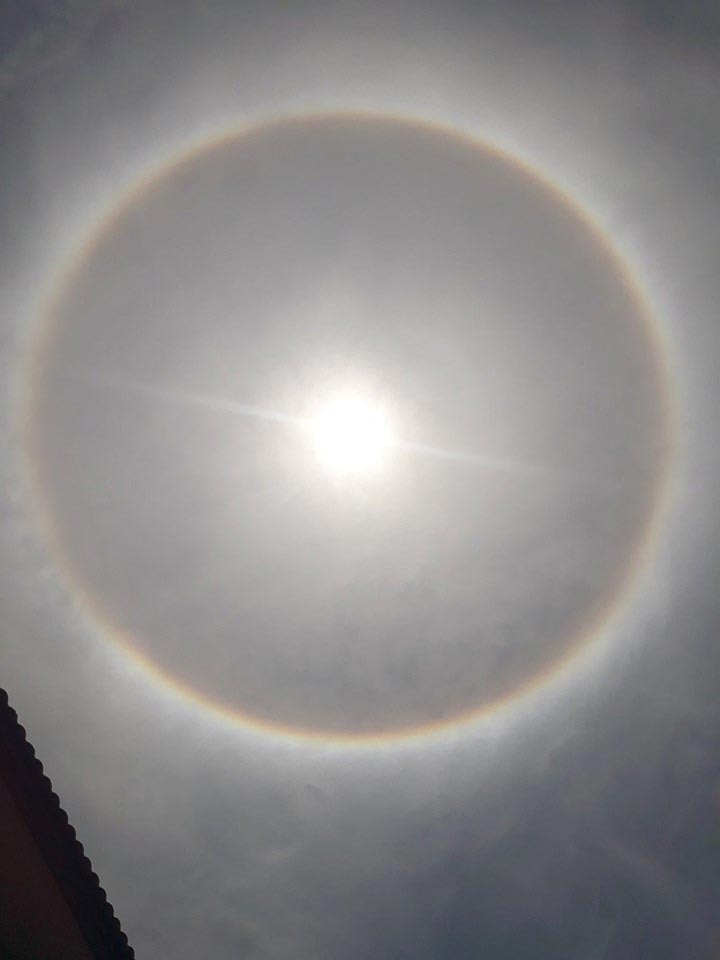 เผยภาพปรากฏการณ์พระอาทิตย์ทรงกลด พบเห็นได้ท้องสนามหลวง และในหลายพื้นที่ของกรุงเทพฯ