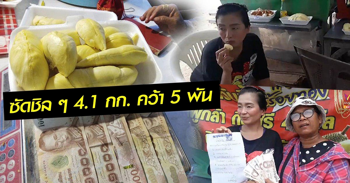 หญิงวัย 40 ปี ร่วมประลองกินทุเรียนร้านดัง ไม่ถึง 3 ชั่วโมง หมดเกลี้ยง ทำสถิติ 4.1 กิโลกรัม เผยเป็นคนกินดุ เคยกินหมูกระทะตั้งแต่ร้านเปิด ยันร้านปิด