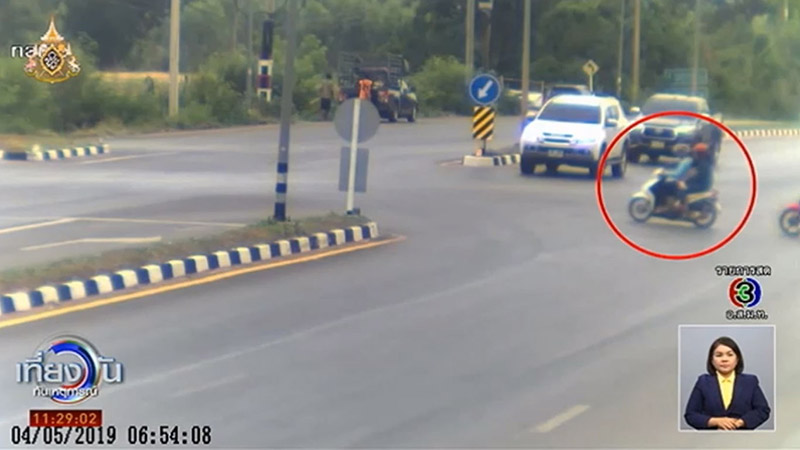 กล้องวงจรปิดสี่แยกเมืองขอนแก่น บันทึกเหตุการณ์สลด รถจักรยานยนต์ตัดหน้ารถบรรทุกพ่วง 18 ล้อ พ่อ-แม่-ลูก ดับยกครัว 3 ศพ ด้านชาวบ้าน ร้องให้ติดไฟจราจร เพราะเกิดอุบัติเหตุแทบทุกวัน