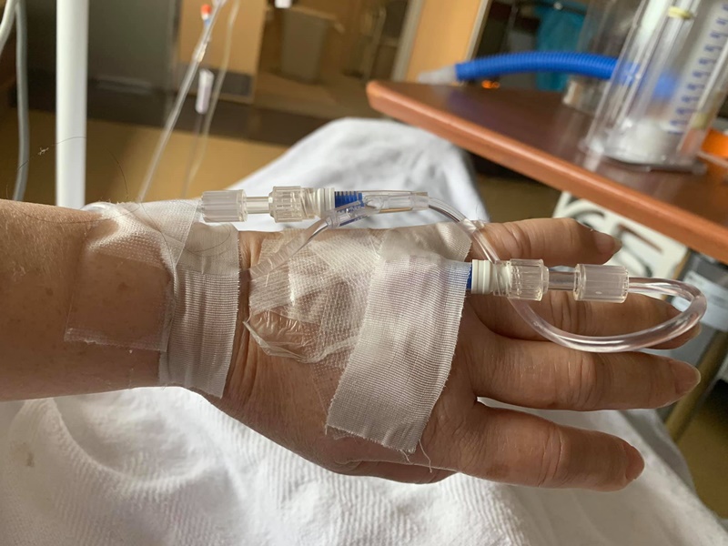 ได้โพสต์ภาพตัวเองขณะพักรักษาตัว พร้อมข้อความระบุว่า "สวัสดีวันเสาร์สีแดงตอนเช้าที่สหรัฐอเมริกา