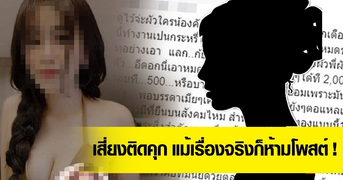 ทนายความชี้ สาวประจานเพื่อนรุ่นน้องแอบมีสัมพันธ์กับแฟนเพื่อน ในกลุ่ม อาจถูกดำเนินคดีติดคุก 2 ปี ปรับ 2 แสน หากอีกฝ่ายเอาผิด ฐานหมิ่นประมาท
