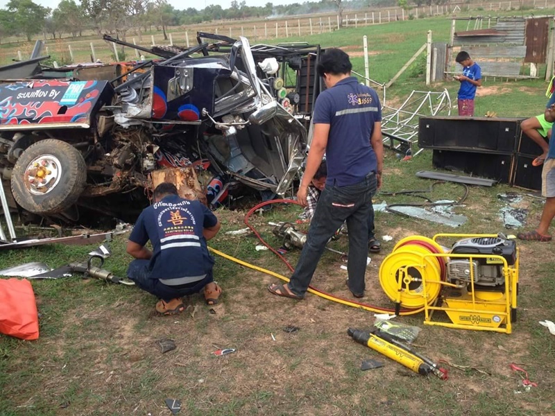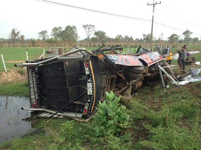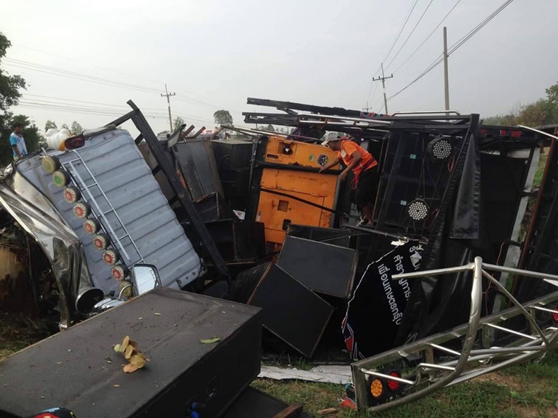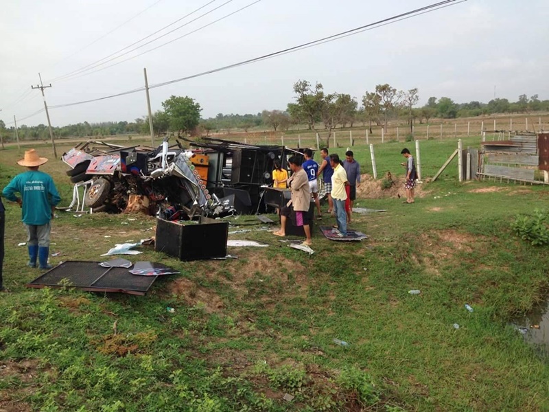 เกิดอุบัติเหตุรถแห่เครื่องเสียงร้อยเอ็ด เสียหลักพลิกคว่ำพุ่งตกข้างทางชนตอไม้ข้างถนน คนขับดับ 1 คน และมีคนบาดเจ็บอีก 13 คน