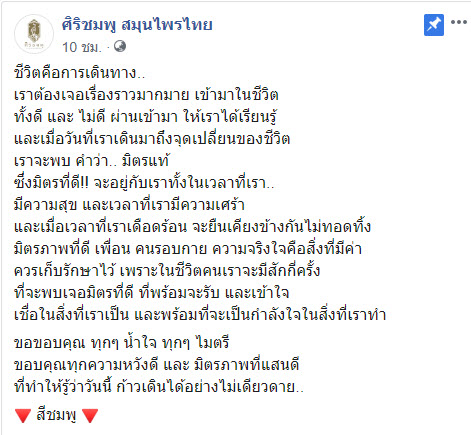 ดร.ศิรินัดดา หักพาล ภรรยา บิ๊กโจ๊ก กลับมาเคลื่อนไหวในโลกออนไลน์ เผยคำคม เมื่อถึงจุดเปลี่ยน เราจะพบ มิตรแท้ พร้อมขอบคุณทุกน้ำใจ หลังบิ๊กโจ๊กถูกสั่งเด้ง