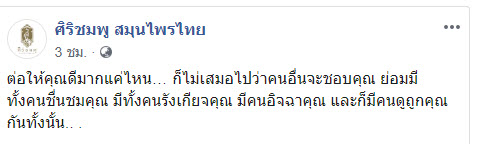 ต่อมาเพจเฟซบุ๊ก ศิริชมพู สมุนไพรไทย ยังได้แชร์ข่าว พร้อมระบุข้อความว่า "ต่อให้คุณดีมากแค่ไหน ?