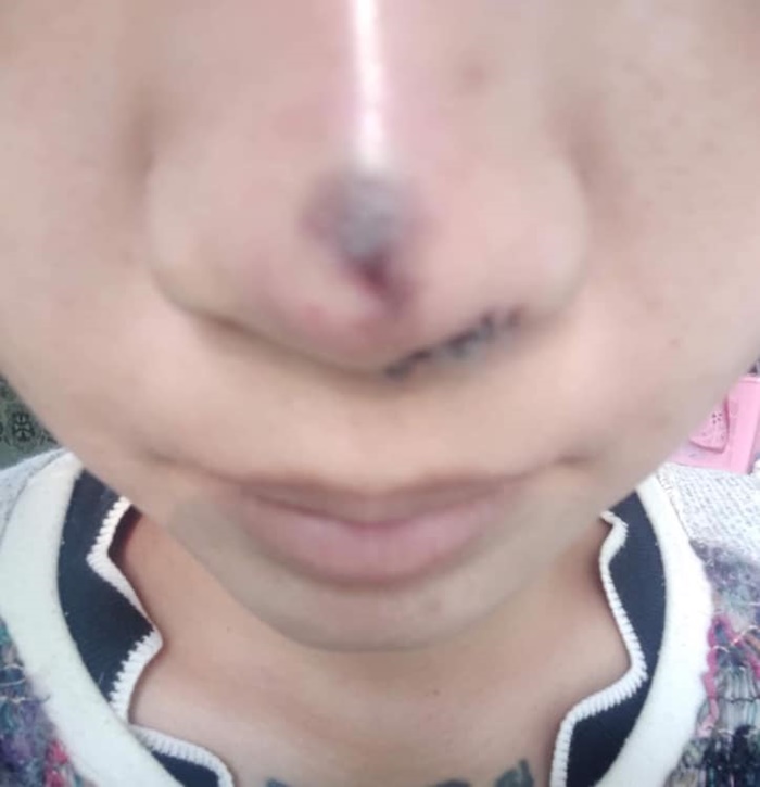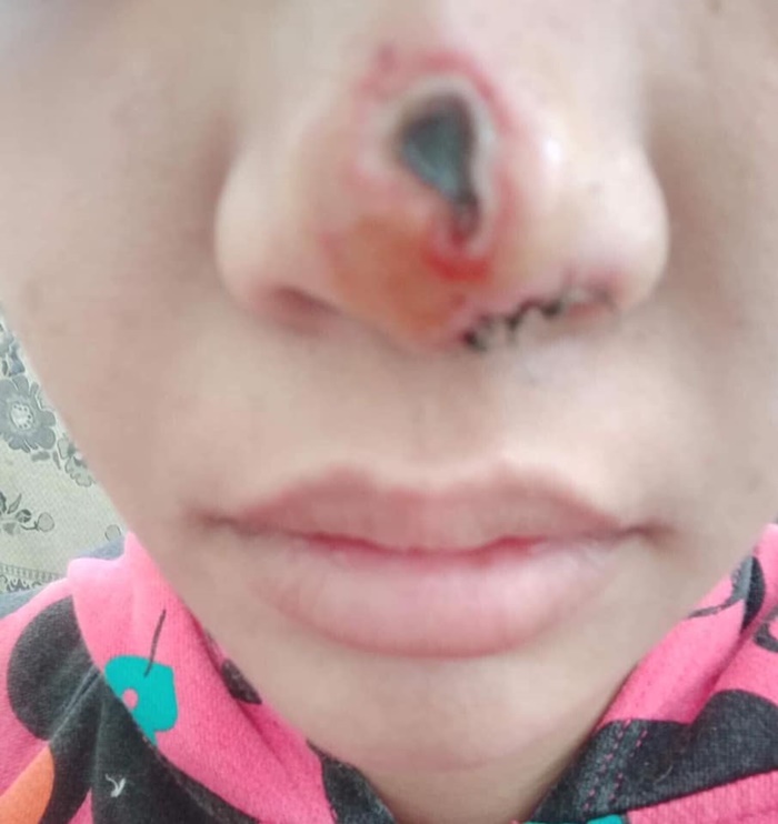 โดยหญิงสาวทั้งมีไข้ อาเจียน เวียนหัว ปลายจมูกทะลุกลายเป็นแผลมีหนอง