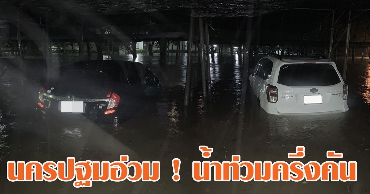 ฝนตกหนักหลายพื้นที่ นครปฐมอ่วม รถยนต์จอดที่หอสมุด ม.เกษตรศาสตร์ วิทยาเขตกำแพงแสน ถูกน้ำท่วมครึ่งคัน จอดเสียจำนวนมาก