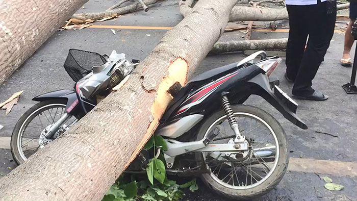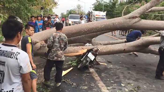 ต้นไม้ยักษ์ล้มทับมอเตอร์ไซค์กลางถนน คร่าชีวิตเด็ก 1 ขวบครึ่ง ส่วนผู้เป็นพ่อขาหัก อาการสาหัส