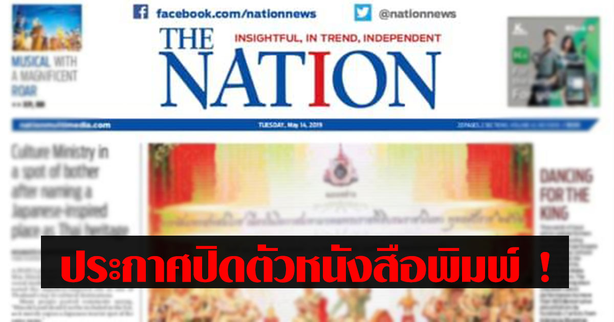 หนังสือพิมพ์ภาษาอังกฤษ THE NATION ประกาศปิดตัวอีกฉบับในวันที่ 28 มิถุนายน 2562 เน้นเป็นสื่อออนไลน์แทน
