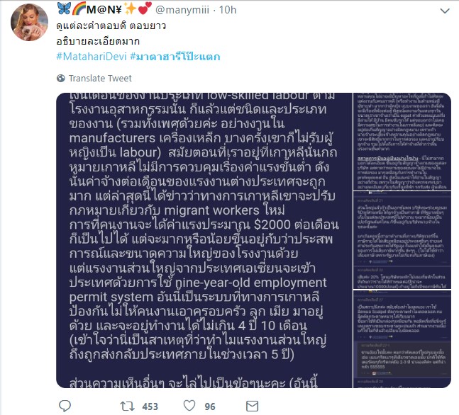 นอกจากนี้ เวลาที่เธอไปตอบข้อความในเว็บไซต์พันทิปนั้น ยังเป็นข้อความที่มีความน่าเชื่อถือสูง อธิบายยาวเหยียด โดยเฉพาะการให้ความรู้เรื่องการไปทำงานต่างประเทศ จนเหมือนคนที่มีความรู้และเคยใช้ชีวิตในต่างประเทศจริง ๆ