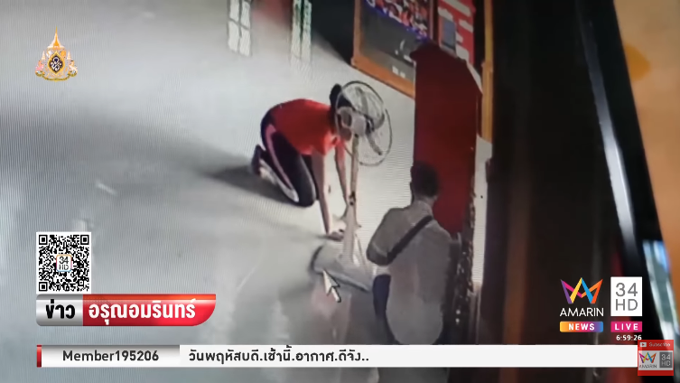 จากนั้นก็เดินไปยังตู้บริจาคเงินและแอบขโมยเงินออกจากตู้บริจาคก่อนจะเดินออกไป