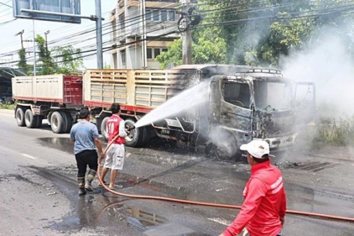 ชื่อว่า เจ้าสิบล้อ ลงมาจากรถในทันที ก่อนไฟจะไหม้ลุกลามทั่วหน้ารถ