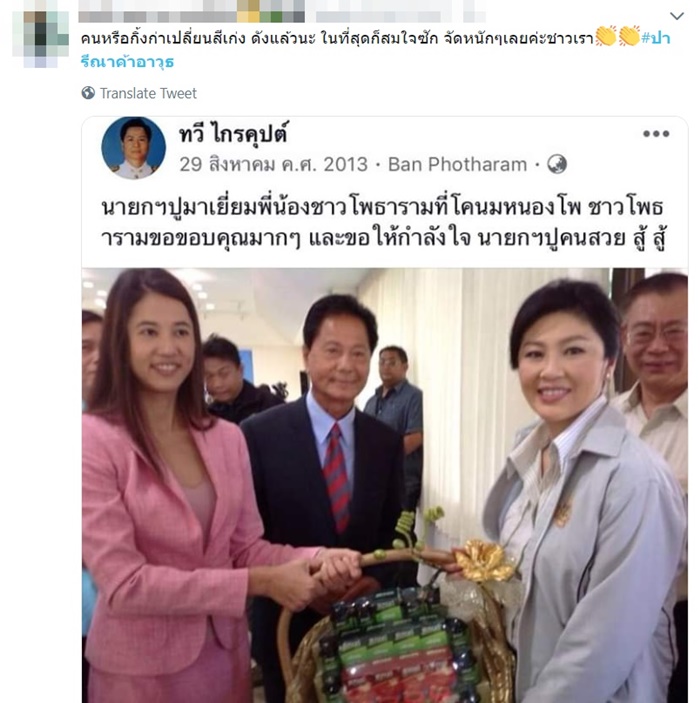 และภาพที่เธอเคยถ่ายกับอดีตนายกฯ ยิ่งลักษณ์ ชินวัตร แต่ตอนนี้กลับด่าอีกฝ่ายแบบรัว ๆ