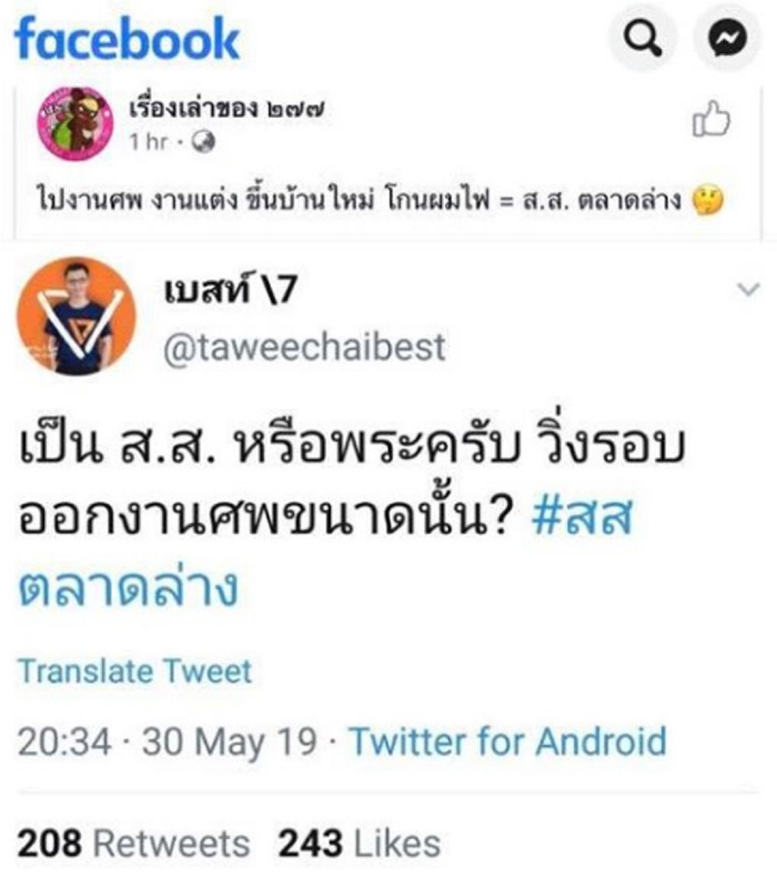 30 พฤษภาคม ที่ผ่านมา ว่า "เป็น ส.ส. หรือพระครับ วิ่งรอบออกงานศพขนาดนั้น ?