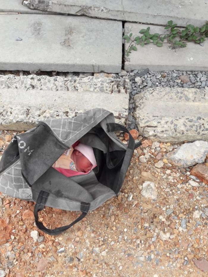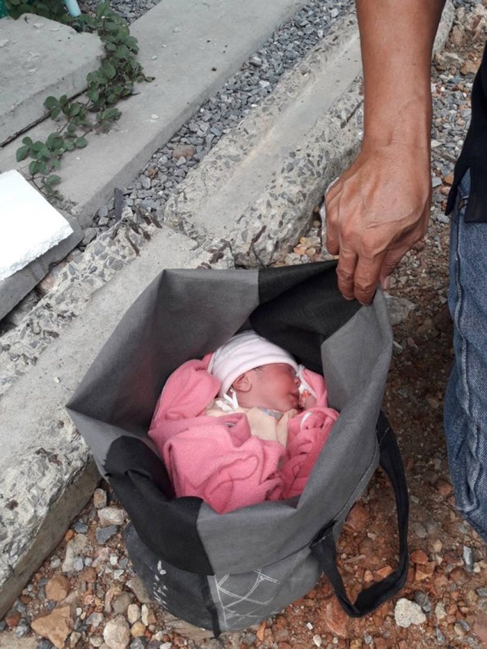 สุดสงสาร.. ทารกน้อยถูกทิ้งใส่ไว้ในกระเป๋าบริเวณที่ทิ้งขยะ ซอยกระทุ่มล้ม 27 จ.นครปฐม สภาพแก้มแดงแจ๋เพราะตากแดด พนักงานเก็บขยะเห็นรีบช่วยเหลือ